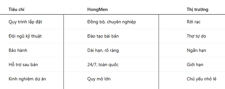 Dịch vụ lắp đặt và bảo hành của HongMen không chỉ là “phần đi kèm” mà thực chất là một hệ thống giá trị cốt lõi, tạo nên sự khác biệt so với thị trường.